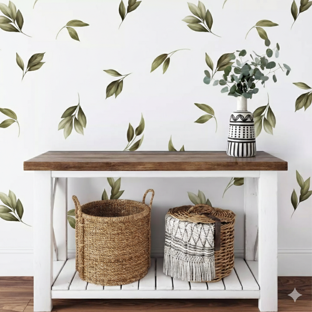 استیکردیواری اتاق خواب طرح برگ