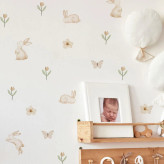 استیکر دیواری گل و خرگوش و پروانه