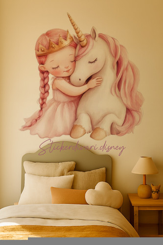 استیکردیواری اتاق کودک مدل دخترو تک شاخ
