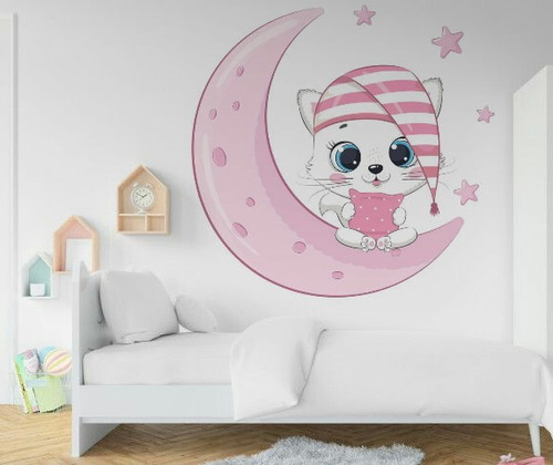 استیکردیواری اتاق کودک طرح ماه و گربه