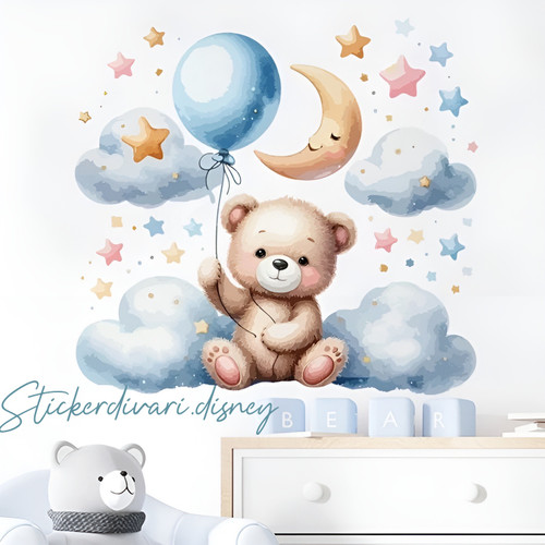 برچسب دیواری تدی و ماه و ستاره