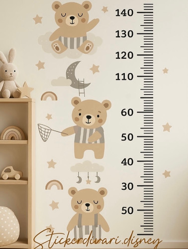 استیکردیواری چارت قد اتاق خواب کودک مدل تدی