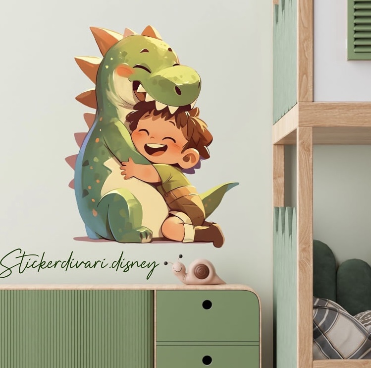 استیکردیواری دایناسور و پسر