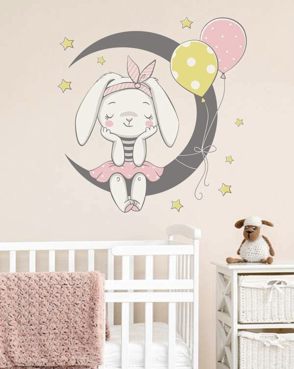 برچسب دیواری اتاق خواب کودک طرح خرگوش ناز