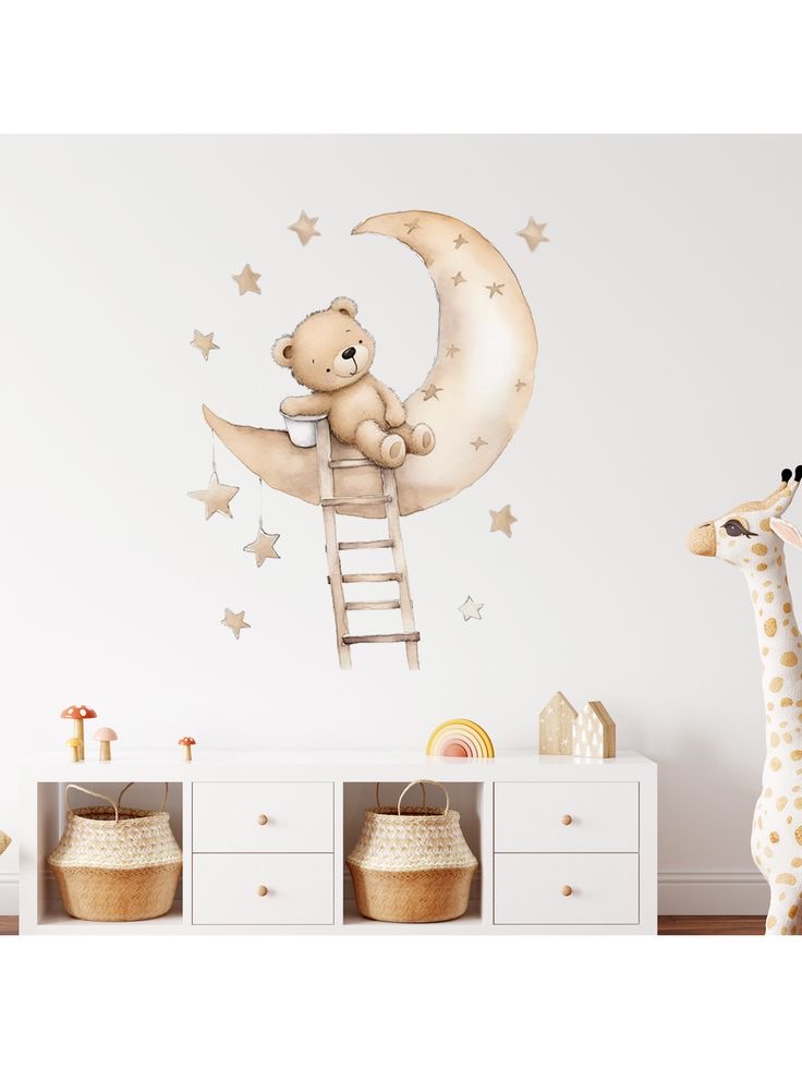 برچسب دیواری تدی و ماه و ستاره